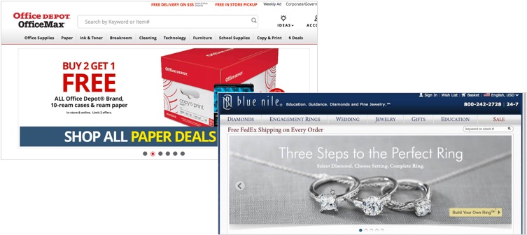 我們之前做的輪播圖可用性研究,發(fā)現(xiàn)大部分用戶會在輪播圖自動輪播完一個輪回前就跳到另一個頁面了,而在手動輪播圖網(wǎng)站里輪播圖只會停留在第一幀,除非用戶主動去找不然他們不會注意到那些有用的信息。所以,即使完善輪播圖的細節(jié)設(shè)計是一個很好的想法,但這并不能成為用戶獲取網(wǎng)站信息的唯一方式。