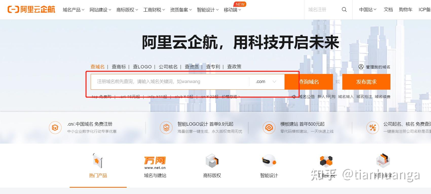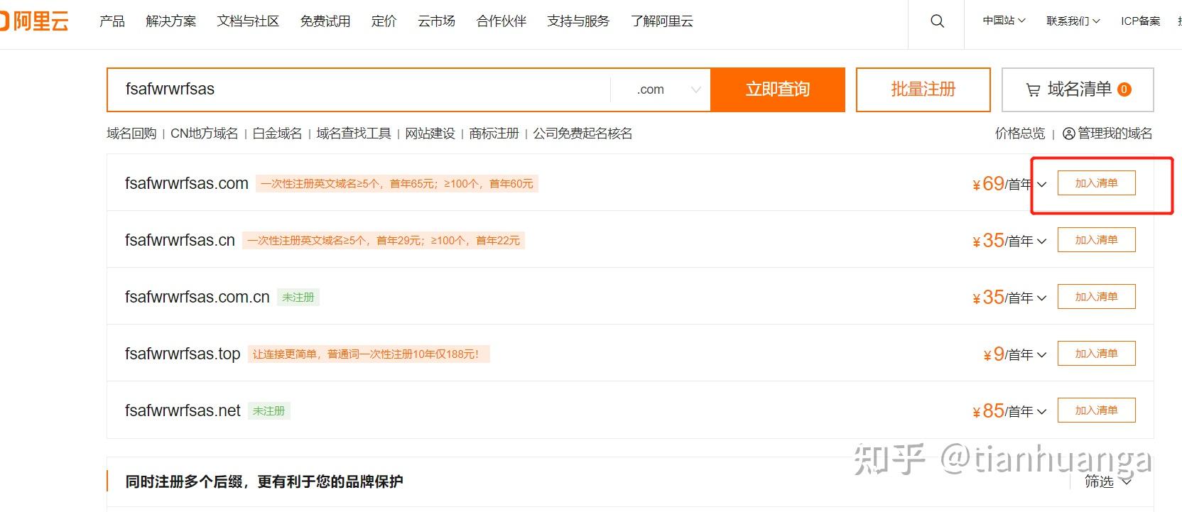 接下來(lái)你就可以選擇自己想要的域名注冊(cè)了,一般選擇的 .com為結(jié)尾的,你點(diǎn)擊:域名注冊(cè)