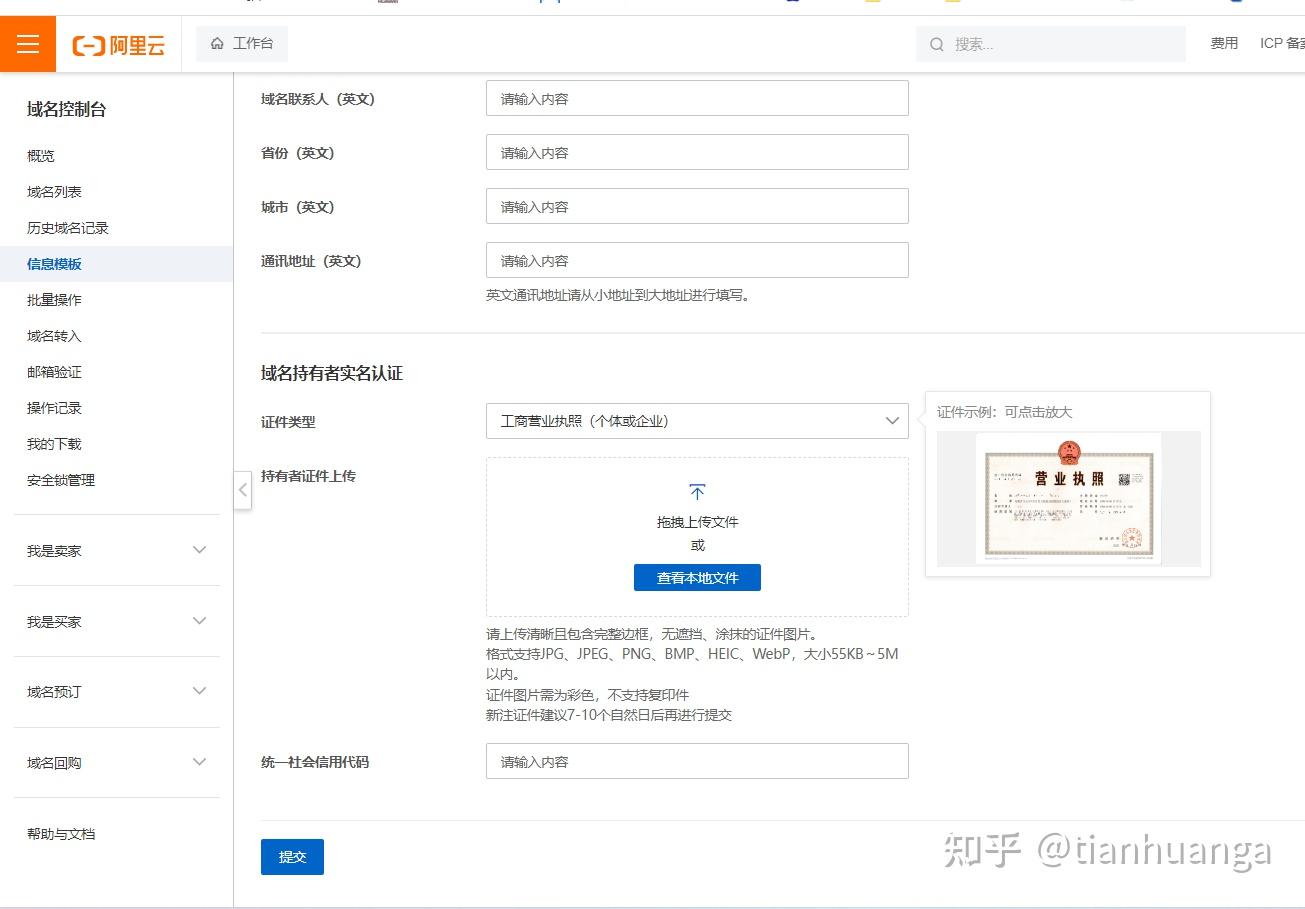 域名持有者需要和阿里云賬號(hào)實(shí)名者信息保持一致,我這里以企業(yè)為例,講解一下