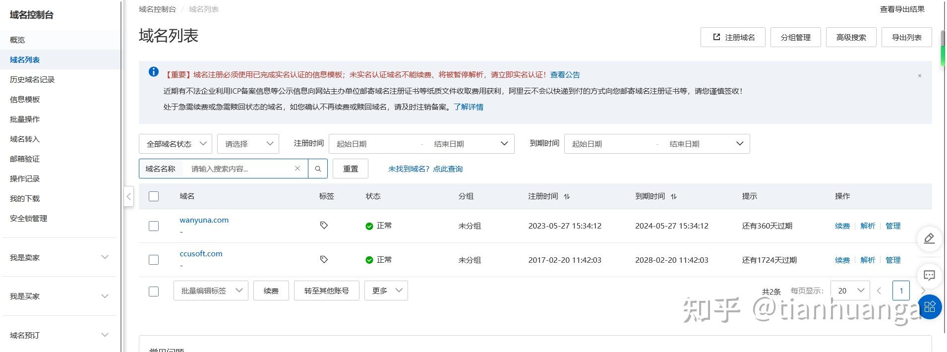 這樣在你的域名控制臺(tái)就可以看到你注冊(cè)的域名了。