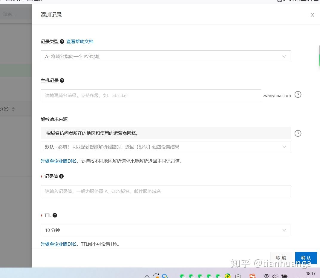 填寫(xiě):主機(jī)記錄,選擇:記錄類型,填寫(xiě):記錄值(這里填寫(xiě)的服務(wù)器IP)